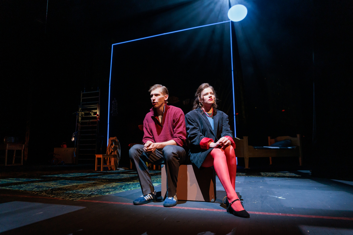 Главная особенность спектакля — необычный ракурс повествования: история рассказана глазами ребенка. Еще не родившийся сын Кати и Мити, обитатель удивительного мира детства, играет в «суд». Через призму детского восприятия он ищет универсальную формулу любви, поставив перед собой задачу любой ценой примирить родителей. Метафизические и художественные образы, полные иронии и светлой грусти из которых соткан спектакль, магическим образом складываются в глубокое размышление о природе любви и верности.