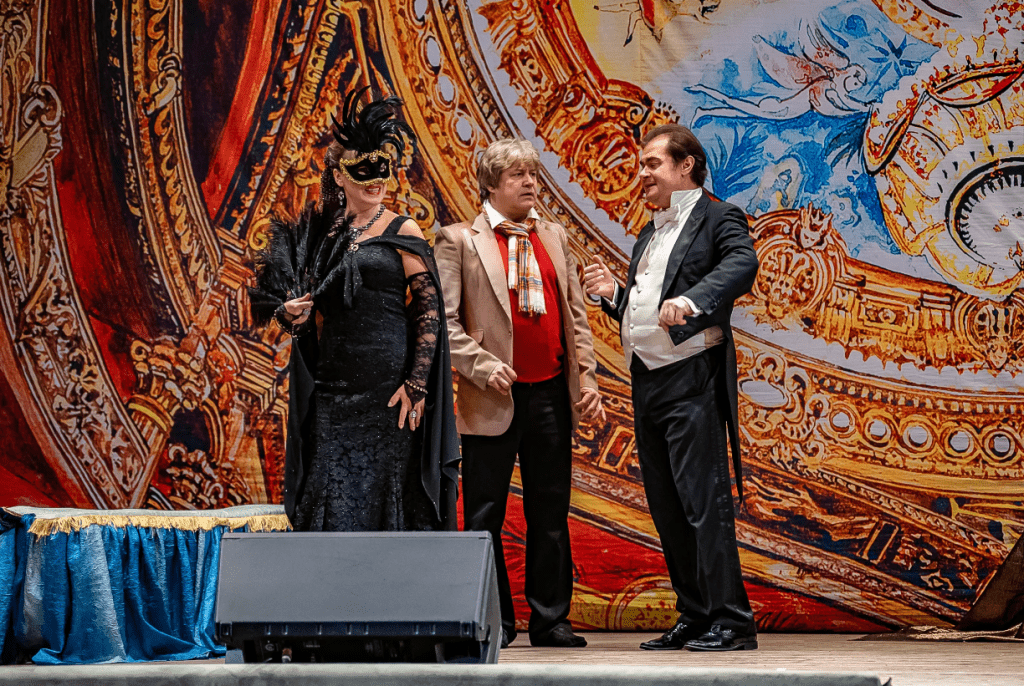 Сюжет оперетты основан на реальной истории, произошедшей в Париже: чтобы проучить своего гуляку-мужа жена отправляется вслед за ним на бал-маскарад, переодевшись в костюм «летучей мыши», ничего не подозревающий муж влюбляется в свою же жену. Дальше разворачивается феерия веселья, захватывающий бал-маскарад в доме князя Орловского, закруживший гостей в вихре венского вальса, в водовороте искрометных розыгрышей и безобидного приятного флирта, легких любовных приключений. Секрет популярности этой оперетты во всем мире в музыке Штрауса, погружающей слушателя в атмосферу вечно праздничной Вены, с вальсами и польками и в уморительно смешной истории. Выкарабкиваясь из ситуации, герои так неумело врут, что зрительный зал каждый раз взрывается смехом и аплодисментами, а задорные и зрелищные номера в исполнении артистов и вовсе не оставят равнодушными ни одного зрителя. В спектакле участвуют ведущие артисты Санкт-Петербурга, лауреаты международных конкурсов: